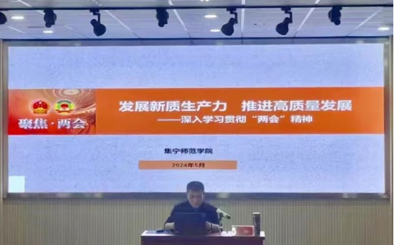 李景杰以“发展新质生产力,推进高质量发展—深入学习贯彻'两会'精神”为题,围绕2024年“两会”概况、2024年“两高”工作报告、2024年政府工作报告三个方面讲解两会精神及习近平总书记重要讲话精神。