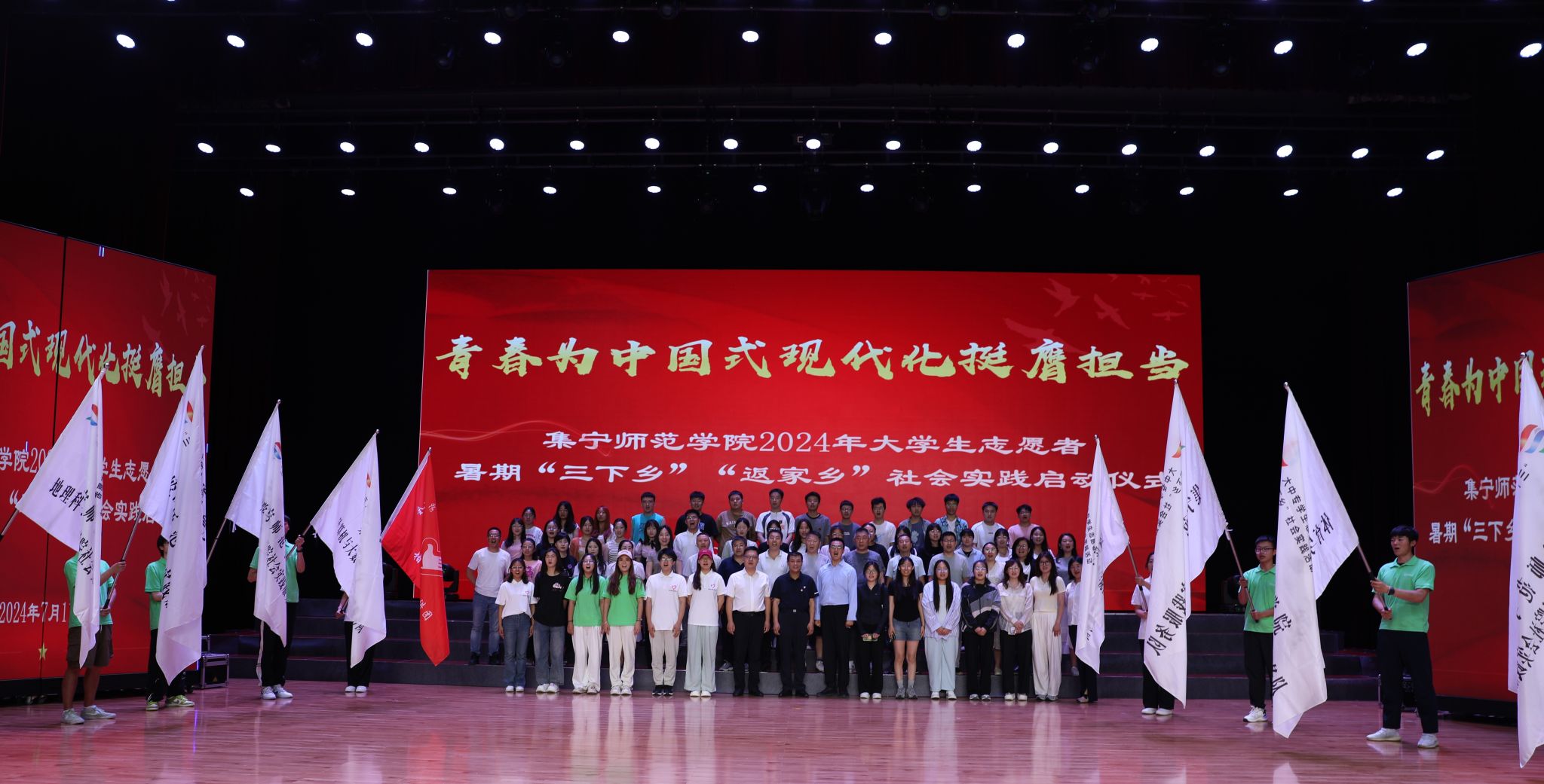 7月11日,集宁师范学院2024年暑期“三下乡”社会实践活动启动仪式成功举办。校党委副书记李景杰出席并讲话,党委委员、宣传部部长郭英,各二级学院分管共青团工作领导、团总支书记、泉山校区二级学院学生代表共500余人参加启动仪式。
