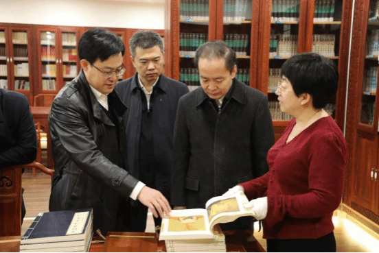 杜汇良一行实地考察了我校中华再造善本库、特藏文献阅览室、矿土土质改性及综合利用重点实验室。校党委书记张宝成从学科建设、人才培养、科研平台建设、师资队伍建设、干部队伍建设等方面对学校的建设发展情况、取得的成绩作了汇报。