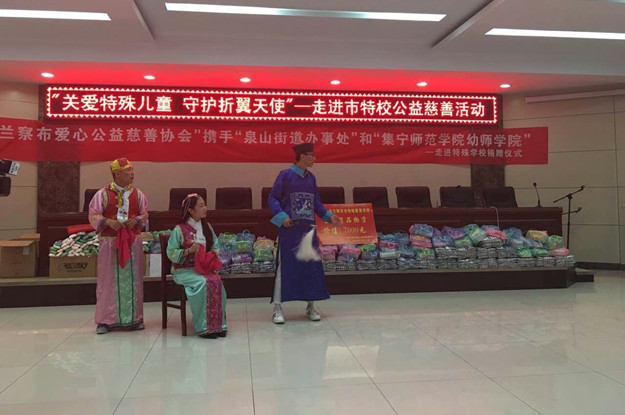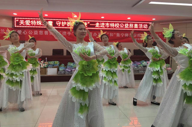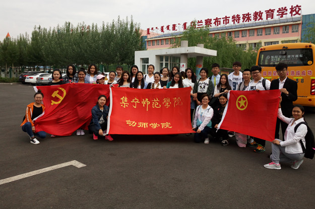 集宁师范学院幼师学院党总支携手乌兰察布爱心公益慈善协会及泉山街道办事处于5月31日举办了“关爱特殊儿童 守护折翼天使”走进乌兰察布市特殊教育学校义演活动。活动由幼师学院学生党支部书记、团总支书记李学敏老师带队,学生党员、团员共27人参加了活动。