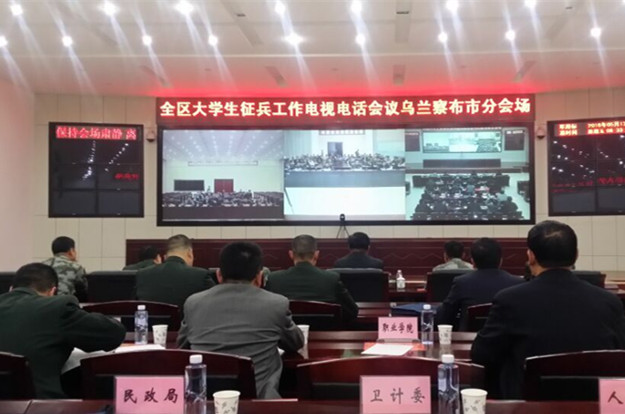 5月13日上午,全区大学生征兵工作电视电话会议在内蒙古军区召开,集宁师范学院校长刘前贵,校长助理、校长办公室主任欧军,学生处副处长曹普庆在乌兰察布分会场参会。会议传达了4月26日由军委国防动员部、教育部在京召开的“全国大学生征兵工作网络视频会议”会议精神。呼和浩特警备区、内蒙古师范大学、乌兰察布市集宁区政府、赤峰学院四个典型单位代表作了发言。