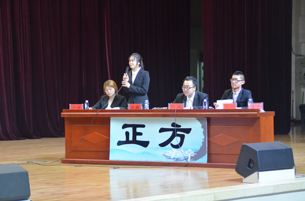 为纪念“五四”运动97周年,以培育和践行社会主义核心价值观为统领,为了提高缜密的逻辑思维和口语表达能力,培养我校学生的团队协作能力,在“五四”青年节来临之际,我校在泉山校区逸夫楼多功能厅举行了第八届“金鹰杯”大学生辩论赛决赛。