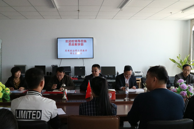 刘前贵肯定了思政部课程体系设置、课程教学效果和老师们为工作所付出的努力。刘前贵提出了几点建设性意见,一是学校各部门要根据教育部《高等学校思想政治理论课建设标准》做好各方面的工作;二是加强师资队伍建设;三是在遵循传统教学方法、教学规律的前提下深化教学改革;四是加强对考研和考公务员学生的辅导,从校情、学情出发分类对学生进行思想政治理论课的教学。