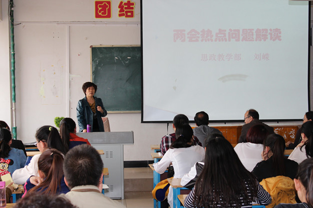刘嵘从“‘十三五’规划纲要、供给侧改革、扶贫攻坚”等方面深入剖析了“两会热点问题”。她的讲解立位高远、深入浅出,既有一定的理论高度,又能释之以鲜活的事例。讲座精彩生动、妙趣横生,与会者深感受益匪浅。讲座为两系师生在深入学习“两会”精神、准确领会和把握“两会”重要内容与精神实质提供了很大帮助。