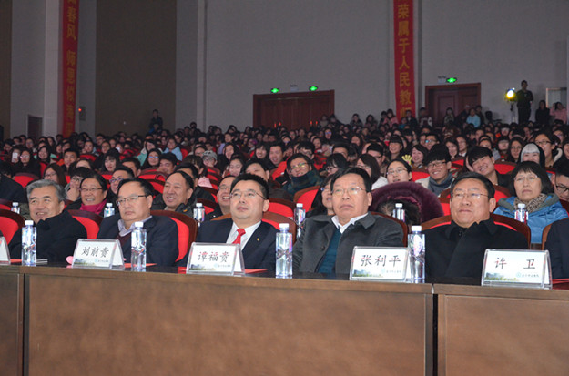 出席大会的领导有校党委书记谭福贵,校长刘前贵,党委副书记张利平、赵海忠,副校长许卫、田智,党委委员、组织统战部部长朱俊仙。各系(院)、部门负责人及部分师生也一同参加了大会。