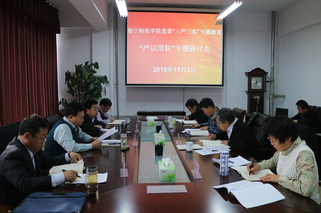按照我校“三严三实”专题教育安排,11月3日下午,校党委书记谭福贵主持召开党委班子“三严三实”专题教育“严以用权”专题研讨会,党委副书记、校长刘前贵,党委副书记、纪委书记张利平,党委副书记赵海忠,党委委员、副校长许卫、田智、梁政,党委委员、组织统战部部长朱俊仙参加了会议。