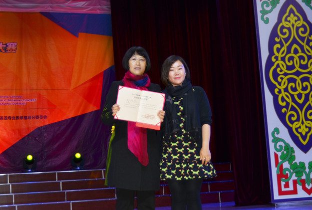 下午6:00,在逸夫楼多功能报告厅举行了隆重的闭幕式。集宁师范学院领导、内蒙古自治区高等教育学会外语教学研究分会领导、专家评委、来自各高校的指导老师、参赛选手和集宁师范学院学生参加了闭幕式。外语教学与研究出版社区域经理韦亚菲讲话,对本次大赛进行了总结,对承办方集宁师范学院团结协作的团队、细致用心的工作、和现代化的硬件设施给予了高度的评价。随后,与会领导、评委为获奖者颁发了证书,集宁师范学院获英语演讲、写作和阅读三项大赛的最佳组织奖。2015“外研社杯”全国英语演讲、写作、阅读大赛内蒙古自治区复赛在集宁师范学院圆满落下帷幕。