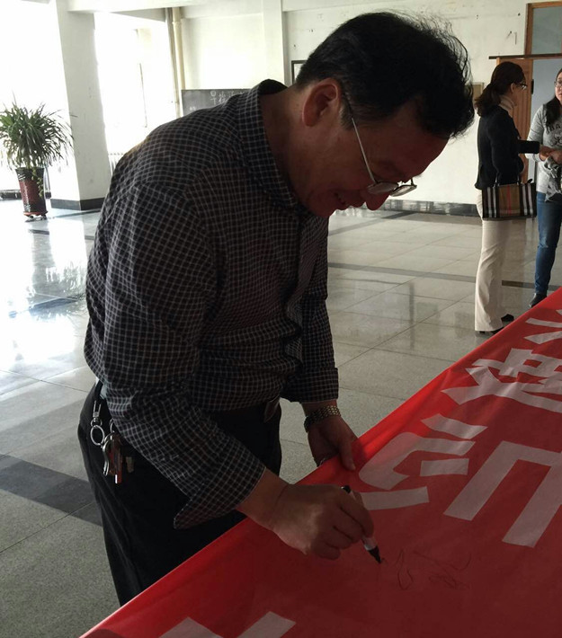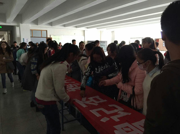 中文系为响应学校号召,提高广大师生对禁毒工作的重要性的认识,于10月20日下午在主楼3楼大厅开展了以“珍爱生命,远离毒品”为主题的禁毒签名活动。