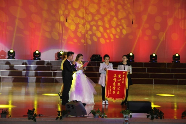 经管系2013级学生刘爱叶为感谢在疾病治疗期间全校师生的大力资助,特赠送锦旗以表达感激之情,校团委书记张妙珠代表学校接受了锦旗。