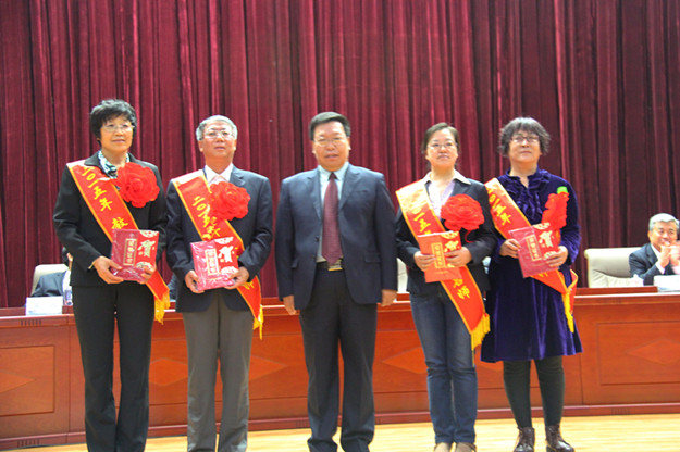 与会学校领导为“管理育人”、“服务育人”、“教书育人”先进个人及“教坛新秀”、“教学名师”颁奖。