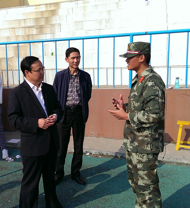 为进一步了解我校2015级新生军训的进展情况,9月15日上午,校党委副书记赵海忠到泉山、白海两个校区军训场地看望军训教官和师生,并指导工作。