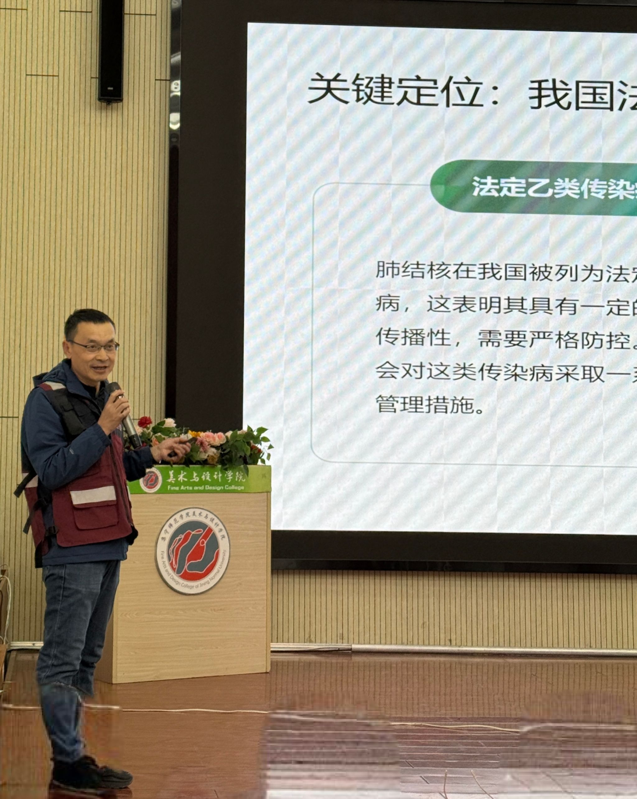 为进一步提升师生结核病防治认知水平,强化自我防护意识,筑牢校园健康安全防线,3月26日下午,由学生工作部(学生处)主办、美术与设计学院承办的结核病防治专题讲座在白海校区举办。本次讲座特邀乌兰察布市疾病预防控制中心结核病预防控制科科长杨军主讲,为师生普及相关防治知识。