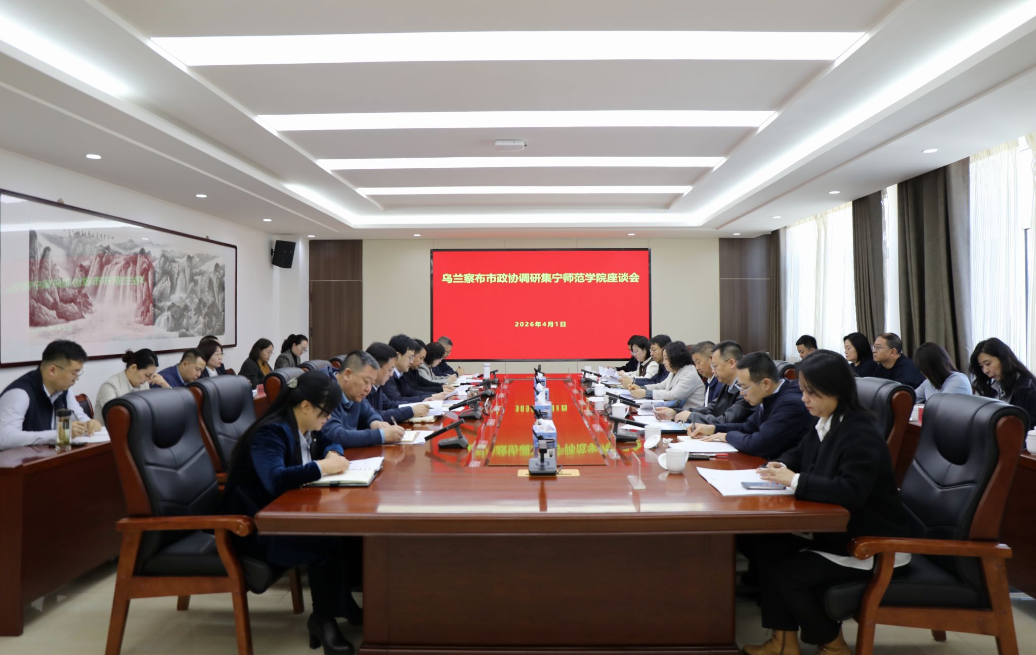 为深入贯彻落实国家“十五五”规划关于就业优先的战略部署,扎实推进自治区“1571”战略落地见效,切实破解地方高校毕业生就业结构性矛盾,4月1日,乌兰察布市政协党组书记、主席岳艳美一行赴集宁师范学院就“加强政校企协同发力,促进高校毕业生本地高质量就业”开展专题调研。市政协党组副书记、副主席靳前斌,市政协副主席卢生奇等相关领导,市人社局、教育局及市政协机关相关负责同志陪同调研,集宁师范学院党委书记张宝成,党委副书记、校长周建华等校领导及部分职能部门、二级学院负责人参加调研。