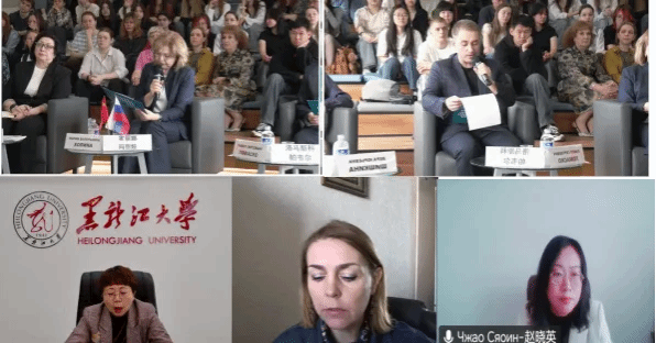 主题发言环节,中俄7所高校代表依次交流。俄方高校围绕教育合作、数字化转型、联合实验室、俄语学习平台等分享合作方向;黑龙江大学、内蒙古师范大学等中方高校分别就人才培养、数字化教育合作等议题展开交流。