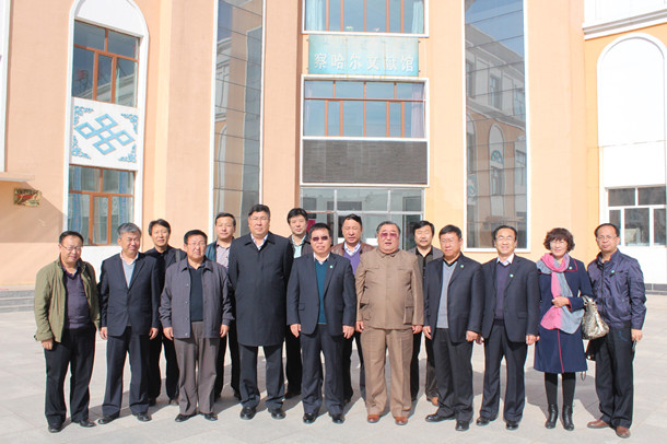 10月22日上午,集宁师范学院院长谭福贵,副书记张利平,副院长阿拉腾巴特尔、田智及相关部门负责人和察哈尔文化研究所有关人员赴察右后旗考察调研察哈尔文化研究、促进与开发工作情况。谭院长一行16人先后参观考察了察哈尔文化会馆、察哈尔文化文献馆和察哈尔文化博物馆。之后,谭院长代表集宁师范学院与察右后旗察哈尔文化研究促进会会长潘小平共同签署了成立“察哈尔文化协同创新中心”的有关协议。