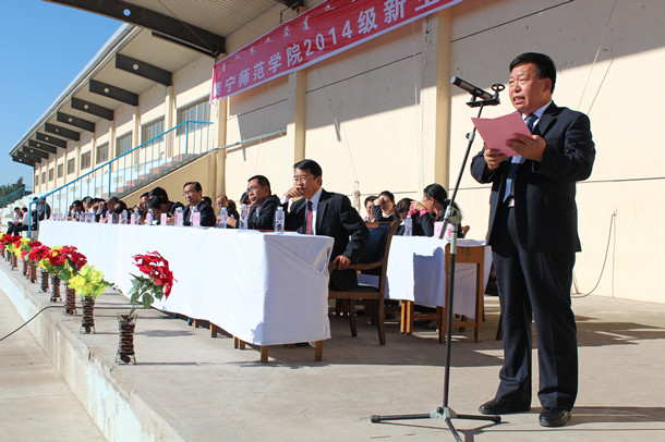 9月3日上午,集宁师范学院2014级新生开学典礼暨军训开训式在泉山校区体育场和白海校区体育场分别举行。校党委书记于杰勇,校长谭福贵,校党委副书记张利平、赵海忠,党委委员、副校长许卫、阿拉腾巴特尔、田智、梁政以及各系(院)、部门负责人,教师代表、学生代表、新生班主任和全体新生出席开学典礼暨军训开训式。