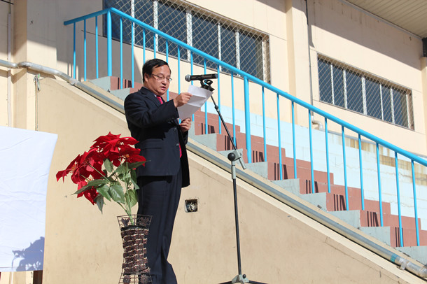 校长谭福贵在仪式上作了讲话。谭福贵说,我校办学历史悠久厚重,经过几十年的发展,学校创造了辉煌的办学业绩,培养出大量优秀的人才。近年来,学校各项发展步入了快车道,逸夫教学楼投入使用,白海校区顺利搬迁入驻,学校的办学条件得到了极大的改善。谭福贵对同学们提出了五点希望:立德立行、敬爱师友;独立思考、善于学习;志存高远、始于足下;专业从优、全面发展;身心健康、快乐生活。最后,谭福贵祝愿同学们生活愉快,学习进步,并预祝军训工作圆满成功。