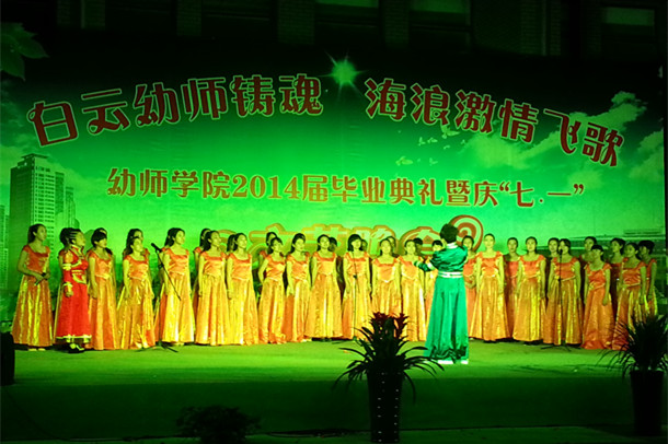 幼师学院在白海校区举办的主题为“白云幼师铸魂、海浪激情飞歌”的毕业典礼和文艺晚会,是为2014届学前教育和初等教育专业420多名专科毕业生精心打造、真情上演,会前还专门把毕业生从泉山校区接来白海校区参观游览,同学们高兴而来,满意而归,带着喜悦和感激度过了在校的最后一天。这次活动得到了学校领导以及办公室、保卫处、音乐系等部门(系)的大力支持和幼师学院学生会同学们的倾情付出,为白海校区文化氛围的营造做出了积极贡献。