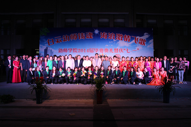 6月30日晚,幼师学院在白海校区举办“白云幼师铸魂,海浪激情飞歌”——2014届专科毕业生毕业典礼暨庆“七.一”文艺晚会。出席本次晚会的校领导有:集宁师范学院党委副书记、校长谭福贵,党委副书记、纪委书记张利平,党委委员、副校长许卫、阿拉腾巴特尔、梁政。部门和系领导有:校长助理、校办主任欧军,纪委副书记赵向军,宣传部部长张富,学生处处长兰立新,团委书记张妙珠,教学督导处处长李林书,保卫处处长谢军,后勤处书记李荣,音乐系主任白志文,蒙文系书记青龙,体育系主任王俊平,中文系书记张来锁等,幼师学院全体教师和429名毕业生参加了典礼。毕业典礼仪式由幼师学院院长曹宇主持。