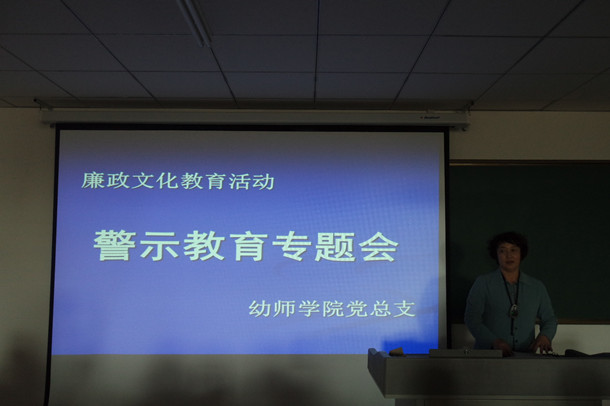 6月24日下午,幼师学院党总支在白海校区1号教学楼组织观看警示教育片《背叛与忏悔》。校纪委副书记赵向军应邀出席并作了讲话。幼师学院全体教职工,学生党支部、团总支、学工办、学生会成员,各班团支部、班委会成员一同观看了本片。