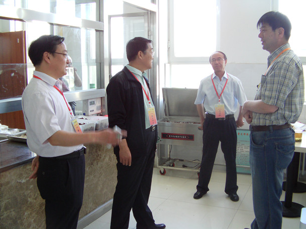 于杰勇和学生在清真餐厅一同就餐,并对清真餐厅的现状提出了指导性意见。