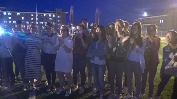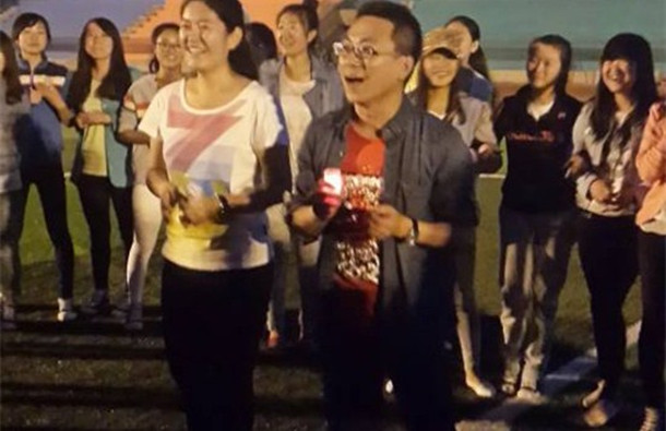 5.13日的团日活动,是幼师学院12级学教2班在白海校区的第一次团日活动,为了呼应“传承中华传统文化”的主题,他们选择在操场举行这一场特别的团日活动,坐在绿茵场上,同学们带来了特别的节目,跳传统的扇子舞、唱校园歌曲、玩捕鱼、丢手绢等……在大家玩得不亦乐乎时,遇到了前来执勤的团委书记张妙珠,宣传部副部长杨瑞芳,团委老师马晓东,他们也加入了游戏,老师们的热情更让同学们感受到集宁师范学院这个大家庭的温暖和温馨。