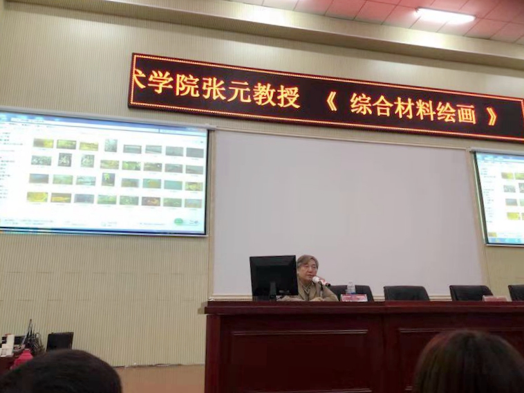 当日下午,中央美术学院张元教授莅临我校举办了《综合材料绘画》学术讲座。