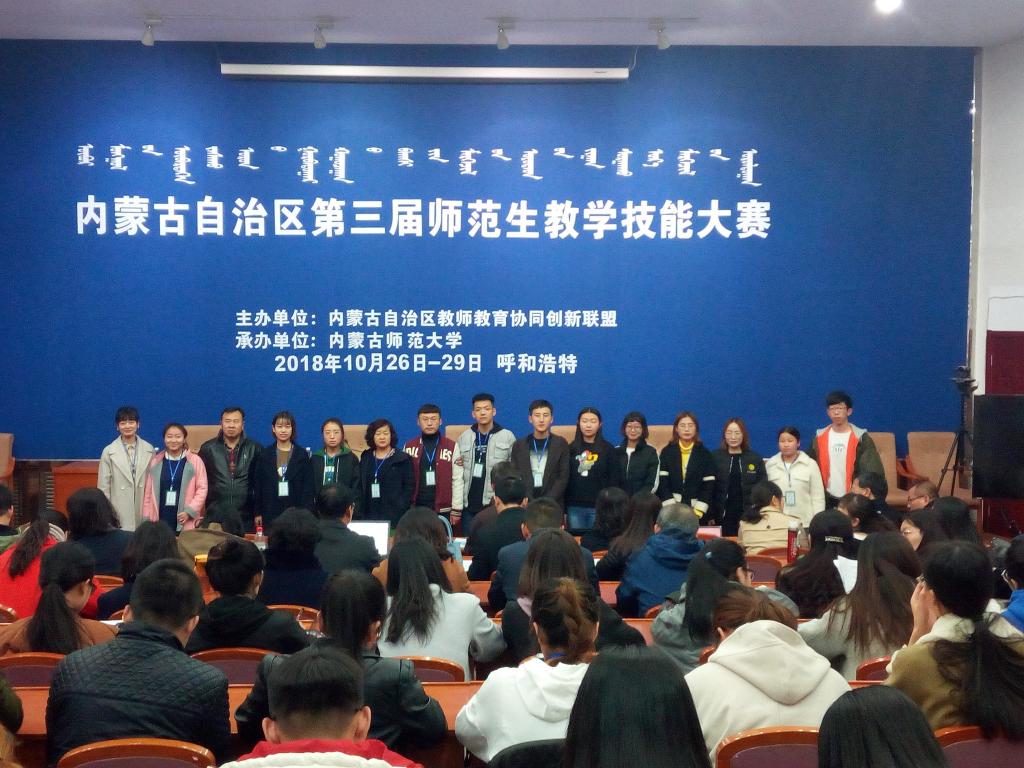1026-28日,由内蒙古自治区教师教育协同创新联盟主办,内蒙古师范大学承办的内蒙古自治区第三届师范生教学技能大赛在内蒙古师范大学举行。全区来自内蒙古师范大学、内蒙古民族大学、包头师范学院、赤峰学院、呼和浩特民族学院、集宁师范学院、河套学院7所高校的112名学生参加了比赛。