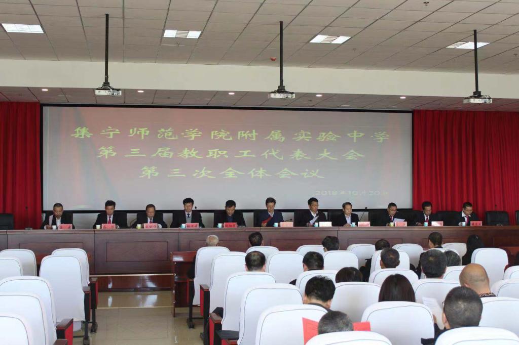 10月30日下午,集宁师院附中在滨河校区图书科技楼召开第三届教职工代表大会第三次全体会议。集宁师范学院党委副书记、校长朱玉东,党委委员、副校长许卫,纪检委副书记、监察审计处处长赵向军,工会主席李耀出席了此次会议。