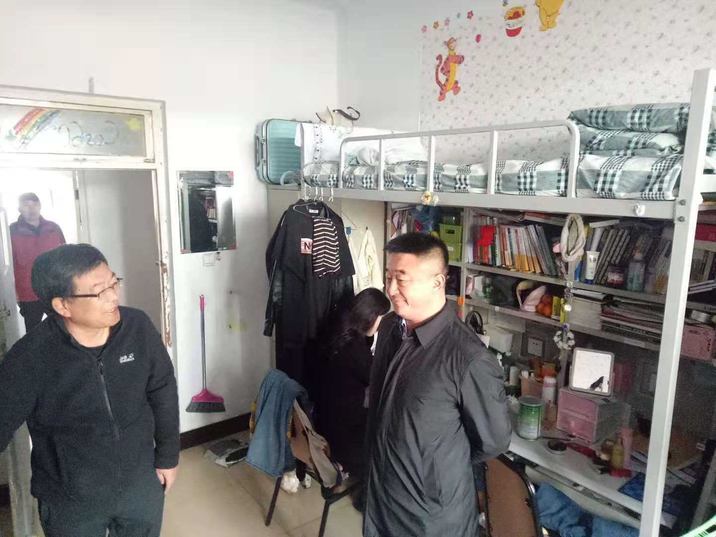 刘春还走访调研了新建学生公寓楼。对新楼设施配置进展情况,及近期学生搬迁准备工作情况进行询问和了解。