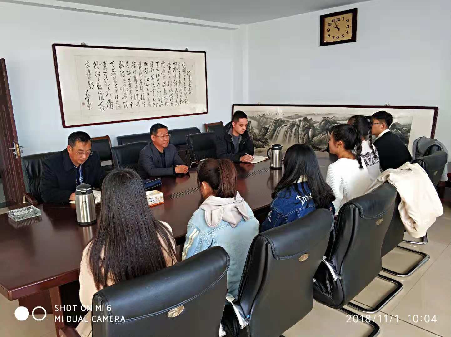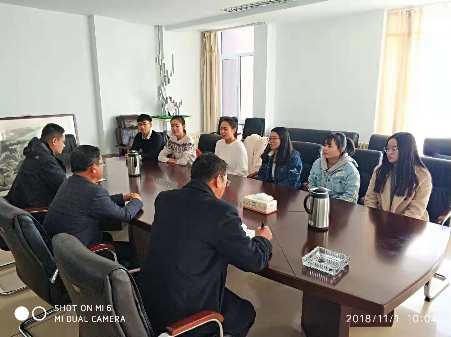 11月1日上午,校党委副书记、纪委书记张利平在行政楼会议室与政法与历史文化学院六位新发展党员进行集体谈话。政法与历史文化学院党总支书记兰林世、学生支部书记韩宁参加会议。