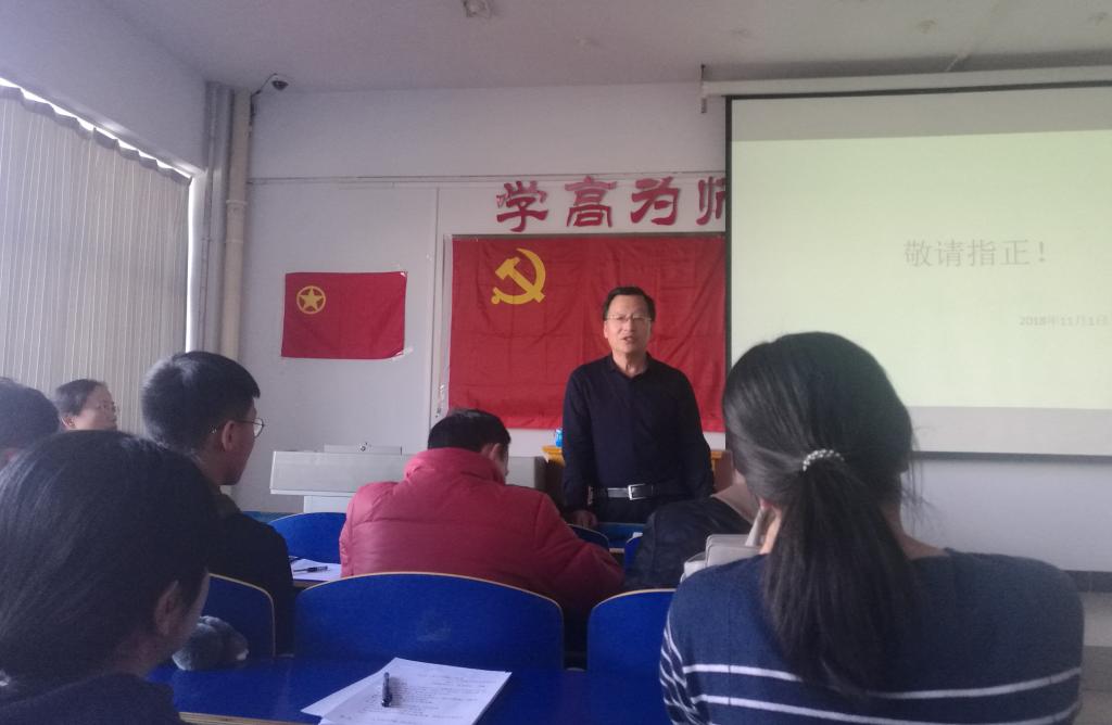 11月1日下午,文学院党总支开展了研读《中国共产党问责条例》、践行制度的专题党日活动,文学院院长李俊主讲,文学院党总支书记张来锁、副书记张一弘以及教师支部成员和学生支部成员共同参加了学习。