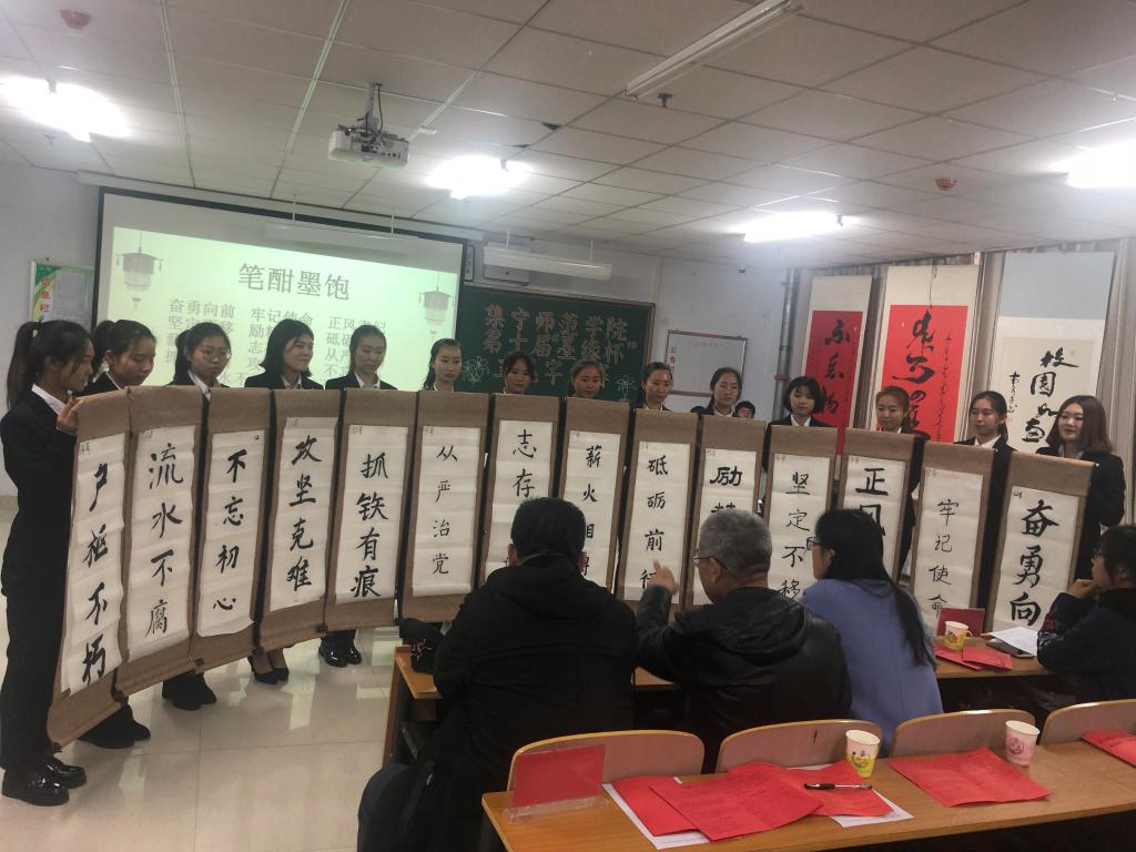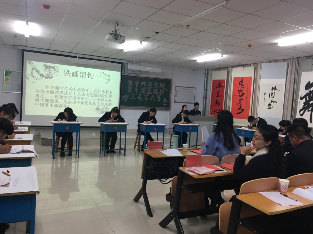 11月8日,由校团委主办,数学学院团总支承办的集宁师范学院第十届“墨缘杯”三笔字大赛汉文组决赛在泉山校区逸夫楼举办。校党委副书记刘春亲临现场,团委书记张妙珠、数学学院党总支副书记张宏智、外国语学院团总支书记赵红霞、各二级学院团员代表共100余人共同观看了比赛。经济与管理学院田振国、文学院郝青山、美术学院范瑞芳、乔婷四位教师担任评委。