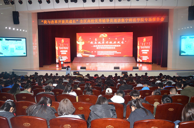 11月16日,我校在泉山校区多功能报告厅举办“我与改革开放共成长”全区高校优秀辅导员校园巡讲活动,自治区高校优秀辅导员第三组巡讲团来我校作了巡讲。党委委员、宣传部部长张富为活动致辞,宣传部副部长杨瑞芳主持了活动。