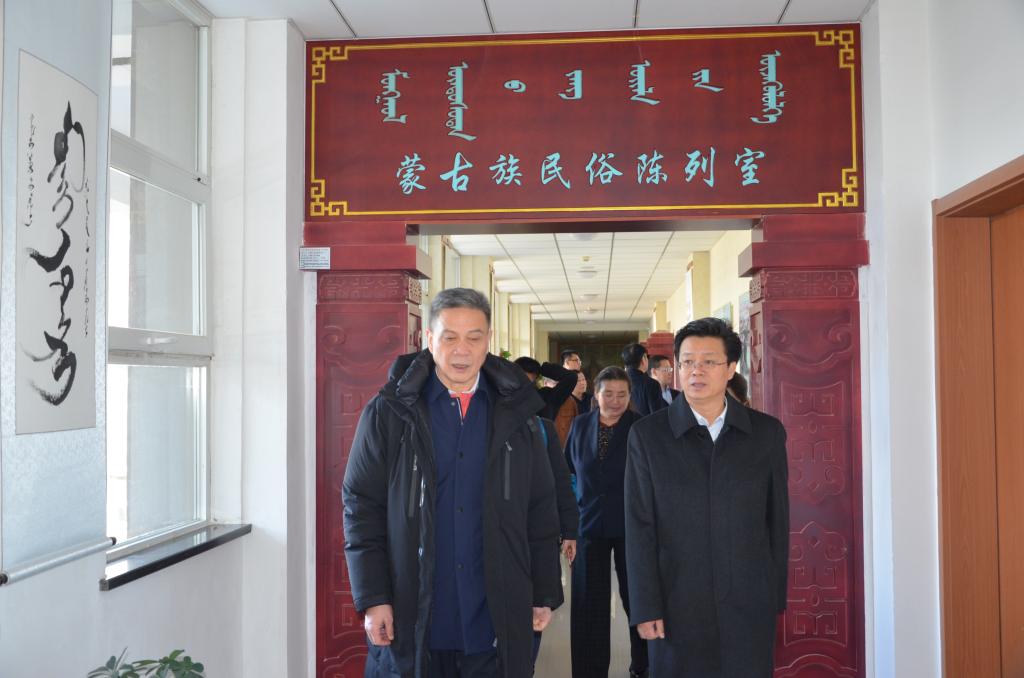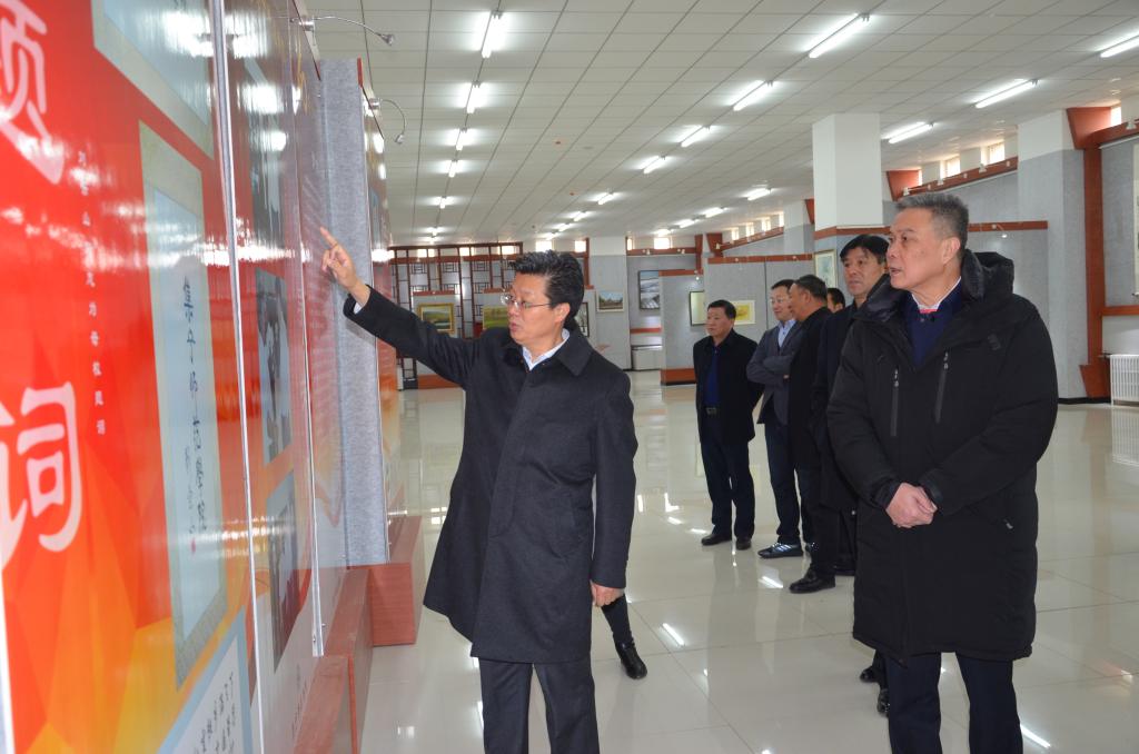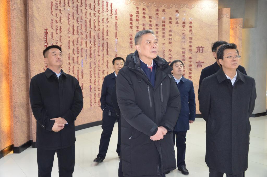 考察组深入我校白海校区美术学院、蒙古学学院、校史馆考察。参观了集宁师范学院优秀校友书画展,蒙古学学院蒙古族民俗陈列室、民族特色教室,校史馆。在校史馆,陈志亚签名留念。