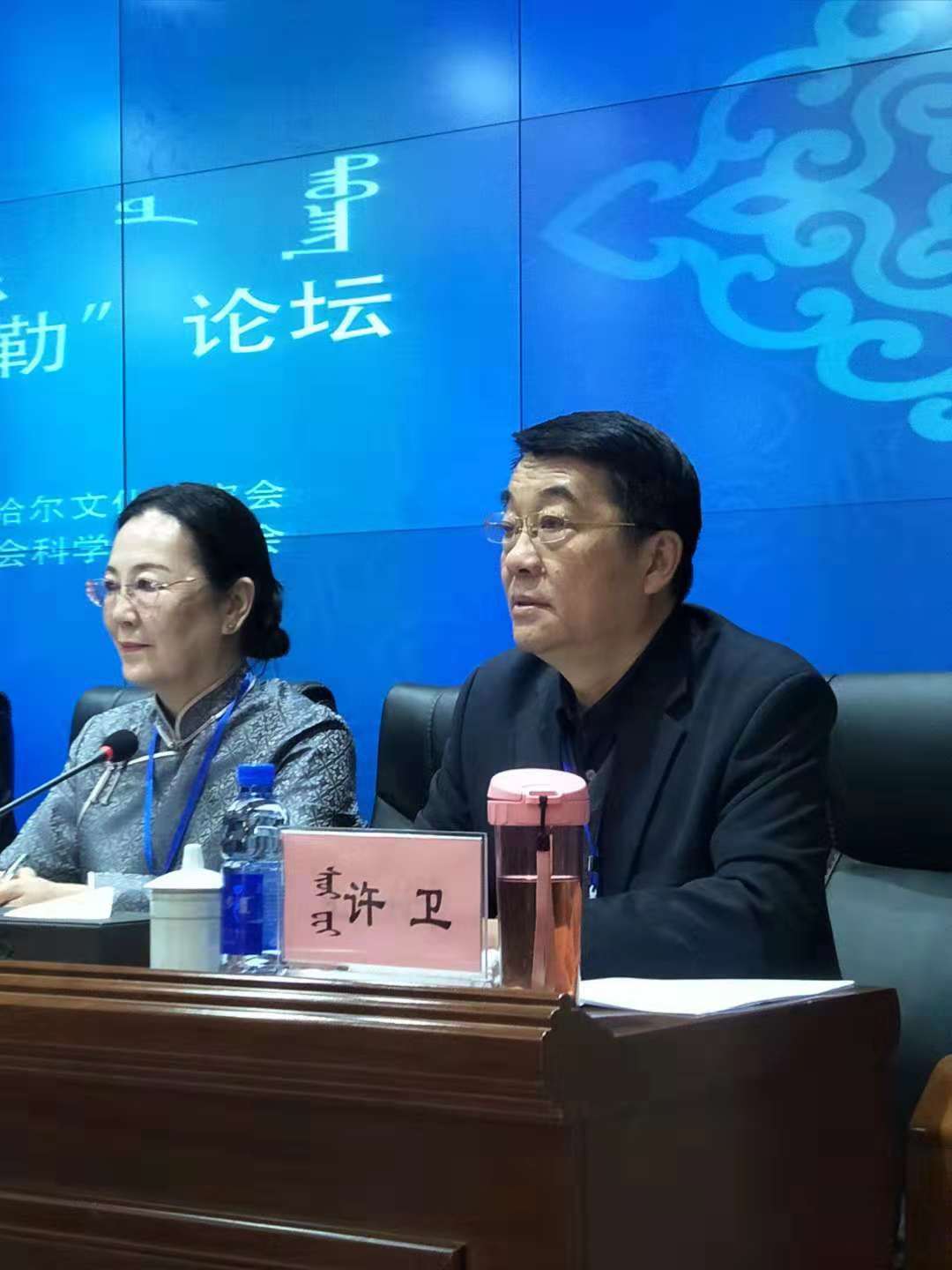 11月24日,我校党委委员、副校长许卫出席在锡林郭勒职业学院继续教育学院·蒙锡雅饭店举办的2018“察哈尔文化·锡林郭勒论坛”会议。内蒙古自治区社科联党组书记、主席杭栓柱,内蒙古自治区社会科学院院长李春林,锡林郭勒盟委副书记包国权,内蒙古自治区民委原主任、内蒙古察哈尔文化研究会名誉会长韦弦,内蒙古察哈尔文化研究会会长潘小平,蒙古国科技大学副校长特·那木南,锡林郭勒职业学院原党委副书记、院长特力更,张家口察哈尔文化研究会常务副会长刘文锦,内蒙古察哈尔文化研究会副会长、秘书长乌兰,锡林郭勒职业学院党委书记朝洛蒙,锡林郭勒职业学院副院长、内蒙古察哈尔文化研究会副会长那木吉拉其仁,内蒙古察哈尔文化研究会副会长、首席专家、学术委员会常务副主任钢土牧尔等出席会议,国内外专家学者180多人参加了会议。