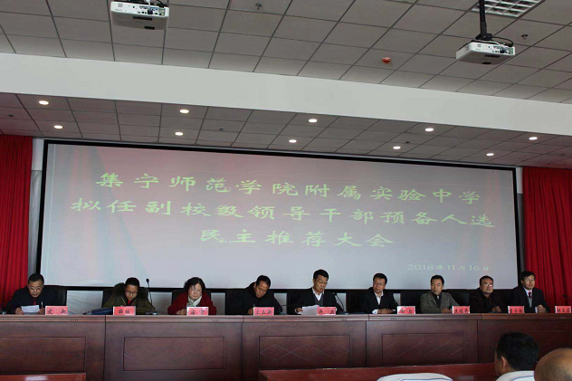 11月16日上午,集宁师范学院附属实验中学召开拟任副校级领导干部预备人选民主推荐大会。集宁师范学院党委委员、副校长、第三考核组组长许卫,副组长黄忠、学生工作处处长兰立新、美术学院党总支书记焦俊亮、组织统战部副部长海棠、物理学院党总支副书记董永胜、第三考核组联络员、数学学院教师高丽丽出席了此次会议。集宁师院附中全体教职工参加了会议。