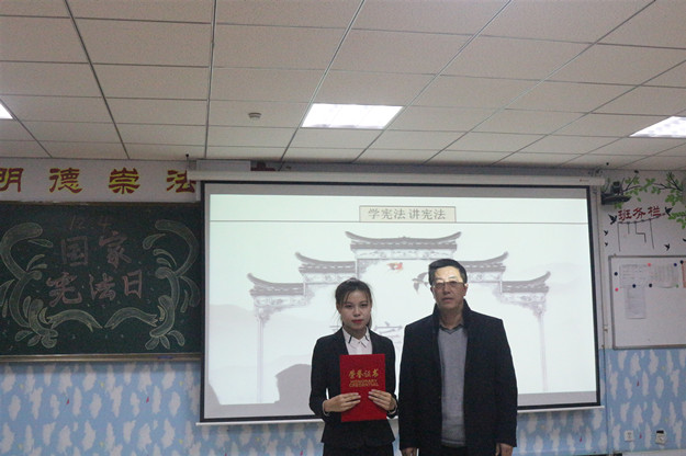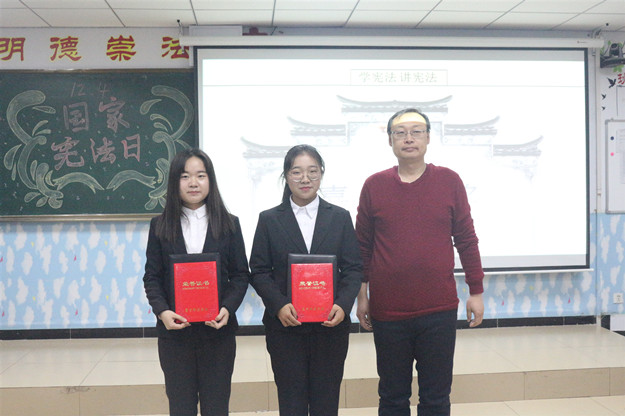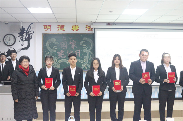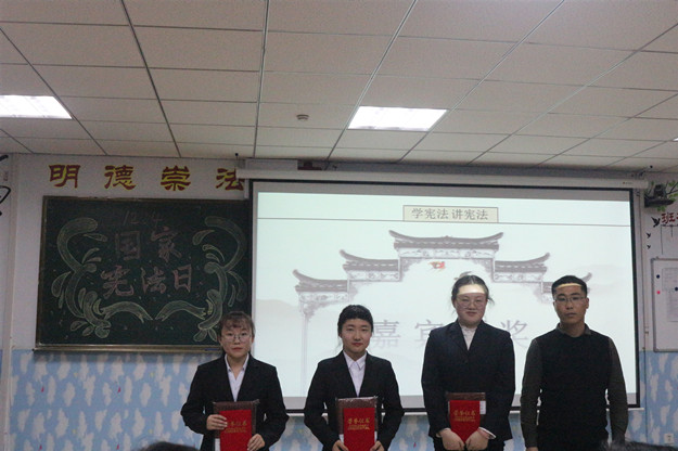 比赛过程中,选手们慷慨激昂、声情并茂,分别从不同的视角阐述了对宪法的理解和感悟,演讲内容紧扣主题、贴合实际。比赛过程中穿插了现场宪法小知识抢答。经过激烈角逐,最终由18级法律文秘杨丽同学摘得决赛桂冠,18级思想政治教育一班刘于华、18级历史一班邵楠获得二等奖,18级历史一班张吉勤、18级思想政治教育一班祖文娇、18级法律文秘其丽木格获得三等奖。