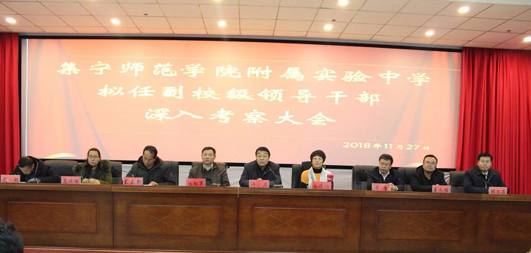 为进一步加强我校教育教学管理力量,配齐学校领导班子,11月27日下午,集宁师范学院附属实验中学召开拟任副校级领导干部深入考察大会。集宁师范学院党委委员、副校长、第三考核组组长许卫,党委委员、组织统战部部长朱俊仙,高等教育研究所所长、第三考核组副组长黄忠,学生工作处处长兰立新,纪检委副书记赵向军,物理学院党总支副书记董永胜,第三考核组联络员、数学学院教师高丽丽出席了此次会议。集宁师院附中全体教职工参加了会议。