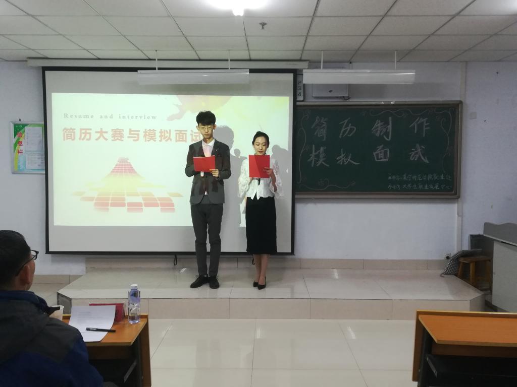 12月6日晚,我校于逸夫楼教室举行简历制作与模拟面试大赛决赛。本次大赛是我校第一届创新创业活动月暨第十届大学生职业生涯规划节系列活动的第二场赛事,由就业处承办,大学生职业发展中心协办。就业处处长刘国义、副处长李荣利出席大赛,各二级学院学工办主任及各学院学生会干部带队参与了大赛。