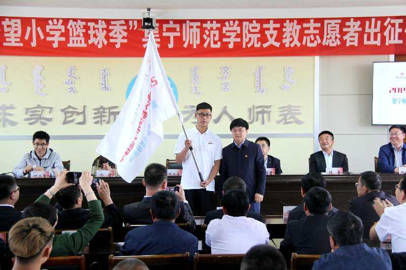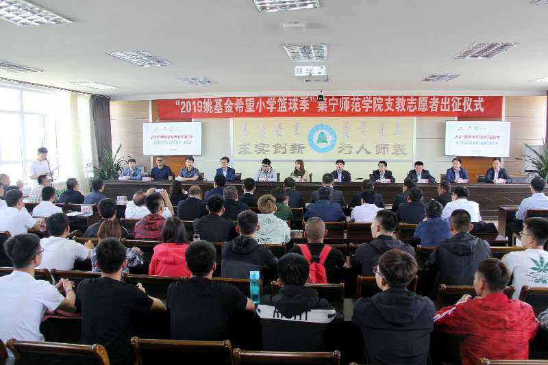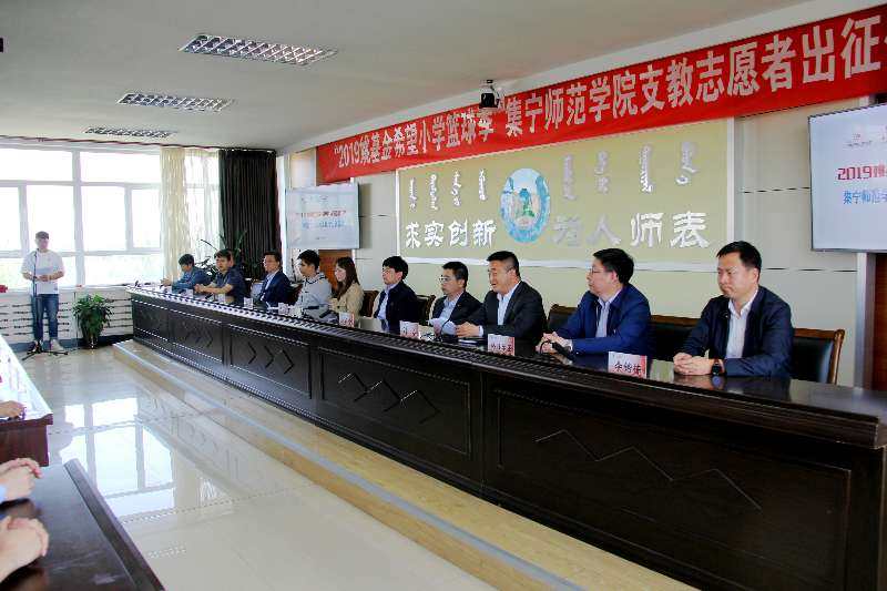 5月28日,我校在行政楼五楼会议室举行“2019姚基金希望小学篮球季”集宁师范学院支教志愿者出征仪式,参加出征仪式的有自治区团委副书记闫立志,老牛兄妹基金会副理事长牛琼,老牛兄妹基金会项目负责人左家雄,北京姚基金公益基金会秘书长叶大伟,北京姚基金公益基金会赛区顾问任瑞凌,中国青少年发展基金会科技体育事业部部长助理张中伟,内蒙古自治区青少年发展基金会秘书长格日乐图,乌兰察布市团委书记李楷栋。集宁师范学院党委书记刘前贵,党委副书记、校长朱玉东,党委副书记刘春应邀参加了本次出征仪式。