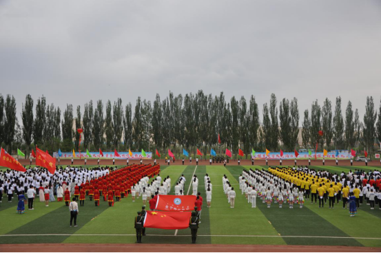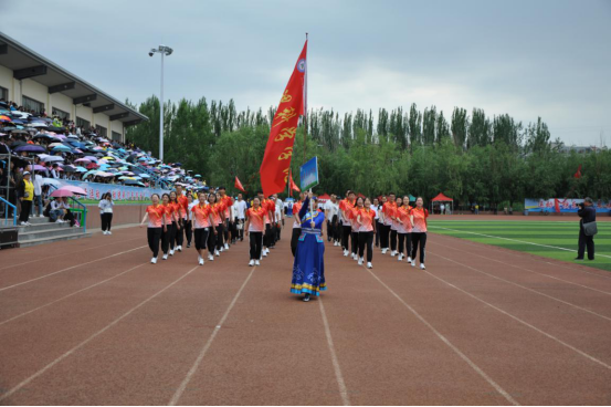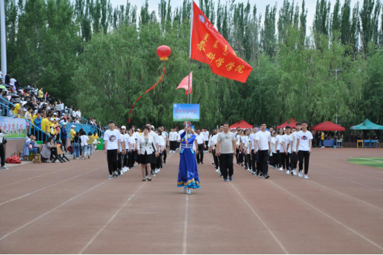 伴着激昂的《运动员进行曲》,国旗校旗队、实践管乐队、花束队、彩旗队、吉祥安代、裁判员,各二级学院、职能部门共30个代表队依次通过主席台,他们口号嘹亮,步伐矫健,统一整齐的着装,各具特色的方阵编排,展现出我校师生团结奋进、积极向上、斗志昂扬的精神风貌。