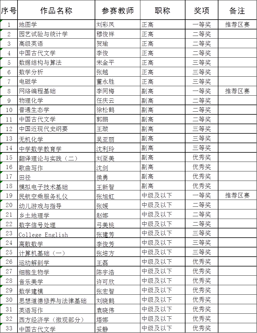 根据《关于举办首届集宁师范学院教师教学创新大赛暨首届内蒙古自治区高校教师教学创新大赛选拔赛的通知》,经二级学院推荐、教务处初审、专家评审,刘彩凤等33位教师获奖。现将评审结果予以公示: