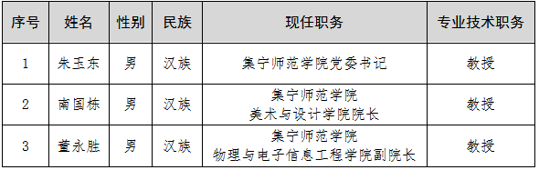 根据《关于中国共产党乌兰察布市第五次代表大会代表选举工作的通知》要求,学校按照党支部推荐、校党委酝酿讨论确定,对代表候选人初步人选进行考察,广泛征求意见,听取党员群众、基层党组织的意见,经党委会议研究确定朱玉东等3名同志为代表候选人初步人选,现公示如下: