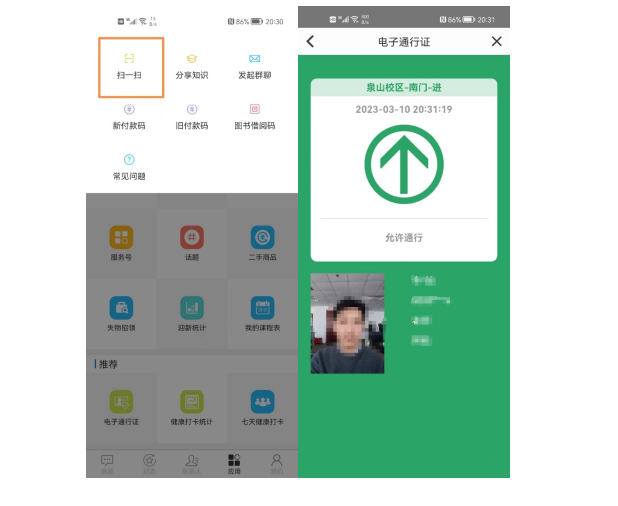 进入【电子通行证】应用,按照提示上传一张免冠照片(可以是清晰的自拍照),上传成功后即完成电子通行证的开通。