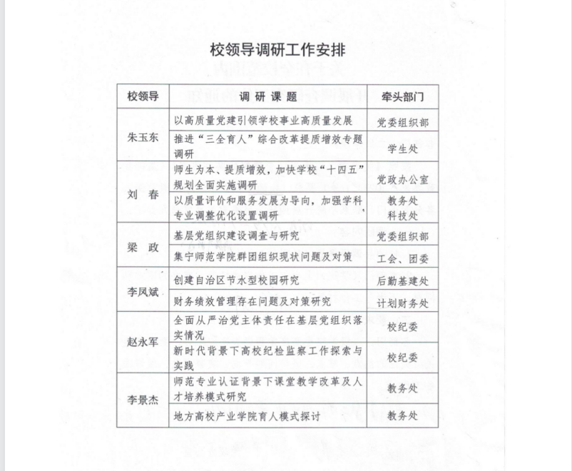 2.调研结束后,学校将召开专题会议,听取各位校领导调研情况汇报。