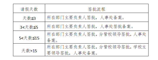 (三)请假人需填写《集宁师范学院教职工请假审批表》,并按要求提供证明材料,按照准假权限批准后方可生效。未经批准的,擅自离岗或经批准但假满未归的,且又未及时办理续假者,其超出天数按旷工处理。