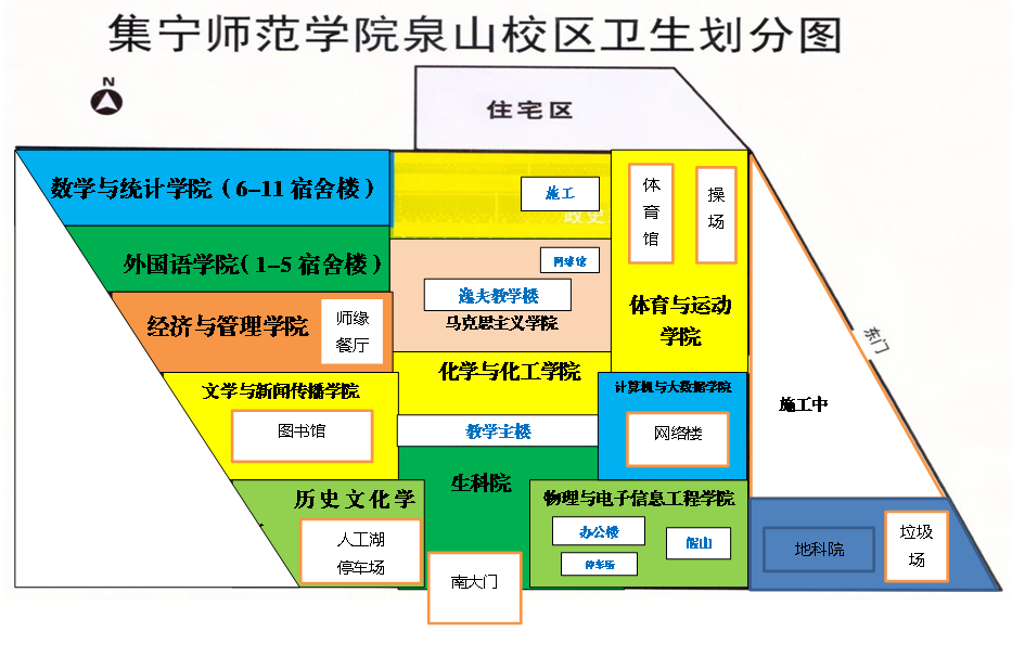 泉山校区劳动区域划分情况详见图1,白海校区劳动区域划分情况详见图2。若各二级学院对劳动区域划分不清楚,请联系后勤基建处李老师(联系电话:18147430606)。