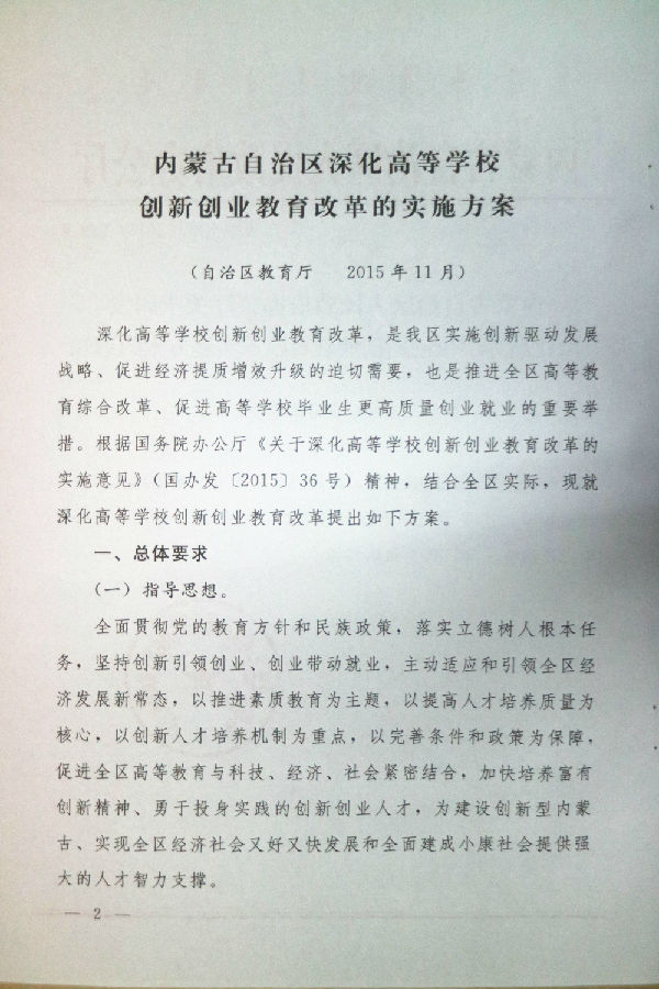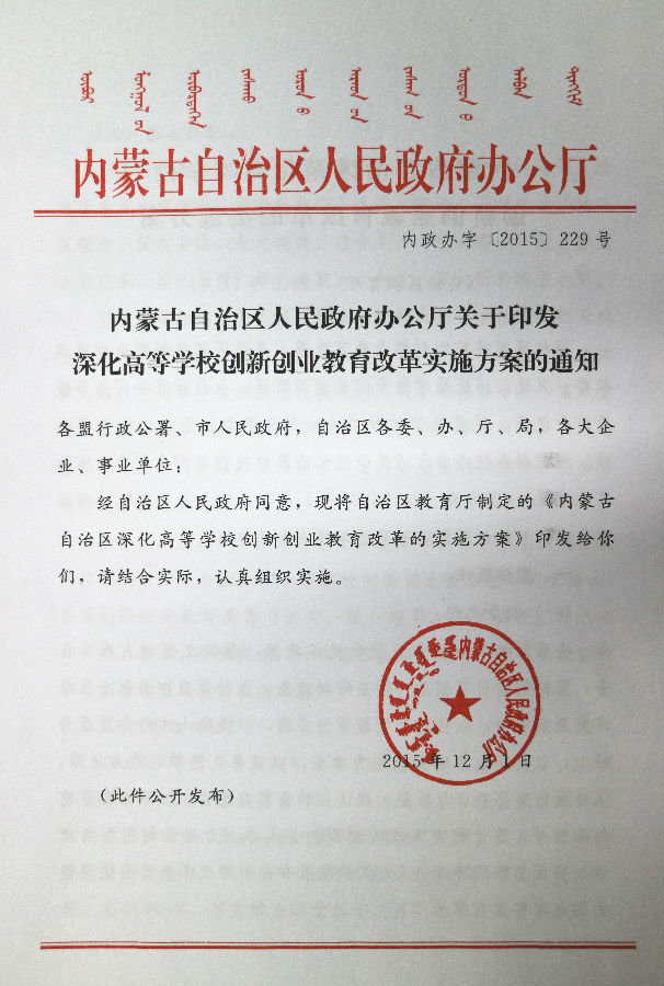 附件:内蒙古自治区人民政府办公厅关于印发深化高等学校创新教育改革实施方案的通知