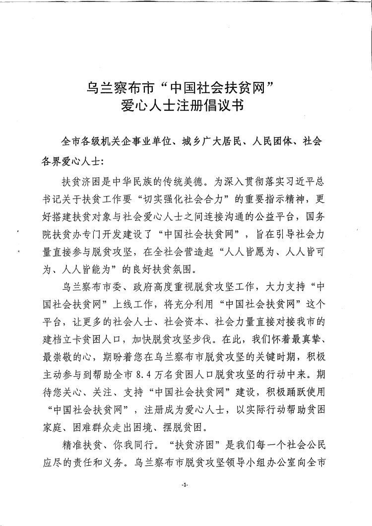 2.《乌兰察布市“中国社会扶贫网”爱心人士注册倡议书》
